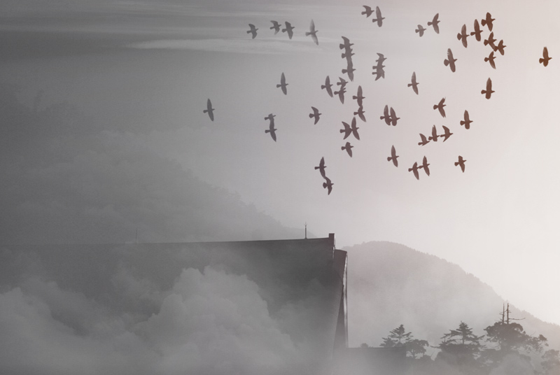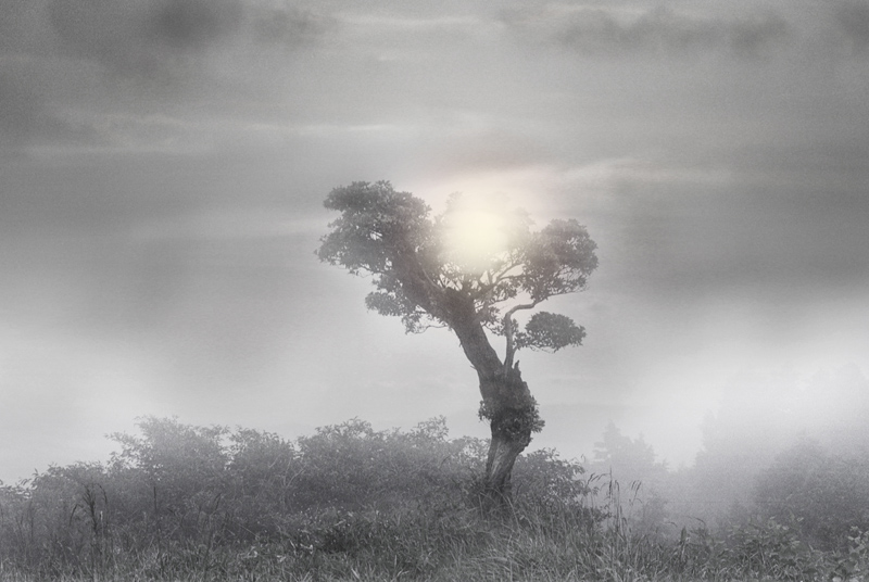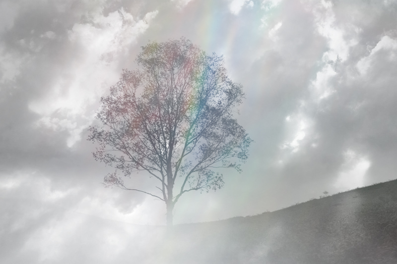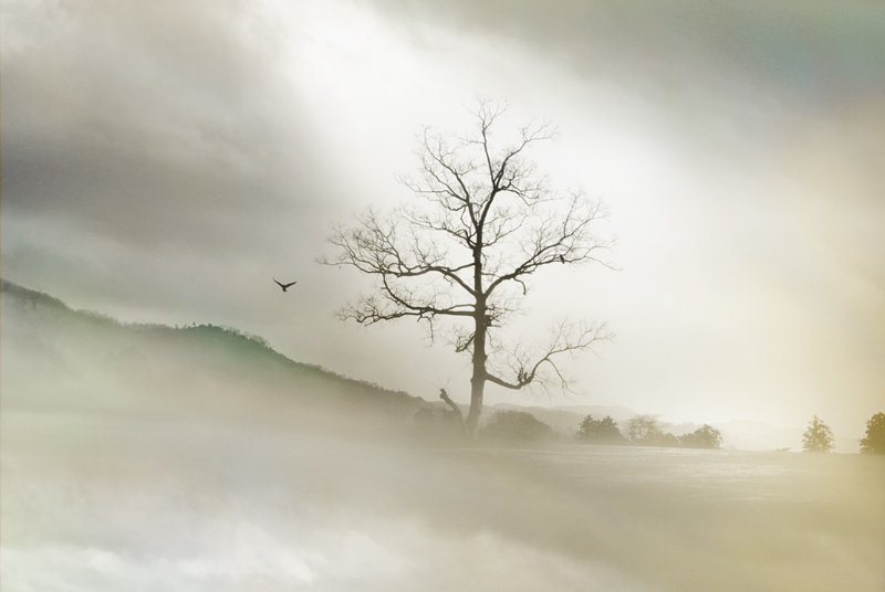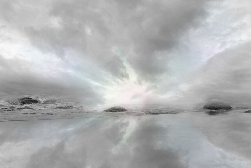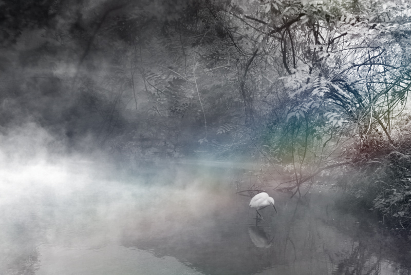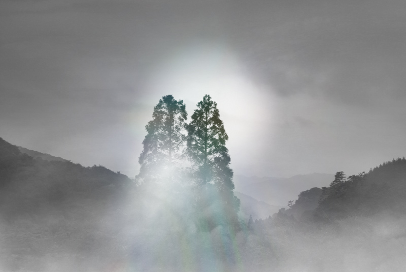 私はふる里から発信する<ゆらぎ>に光を当て墨絵を思わせる不思議な世界を創造する。