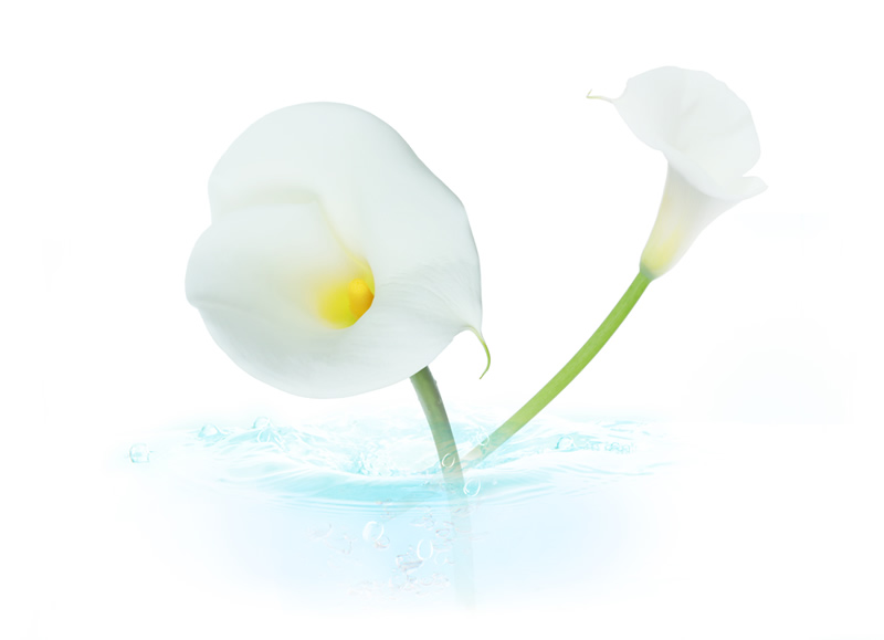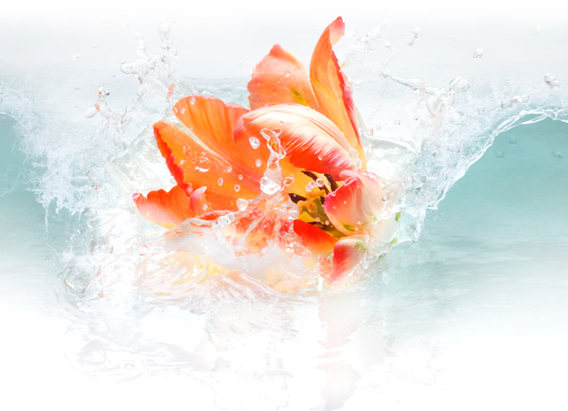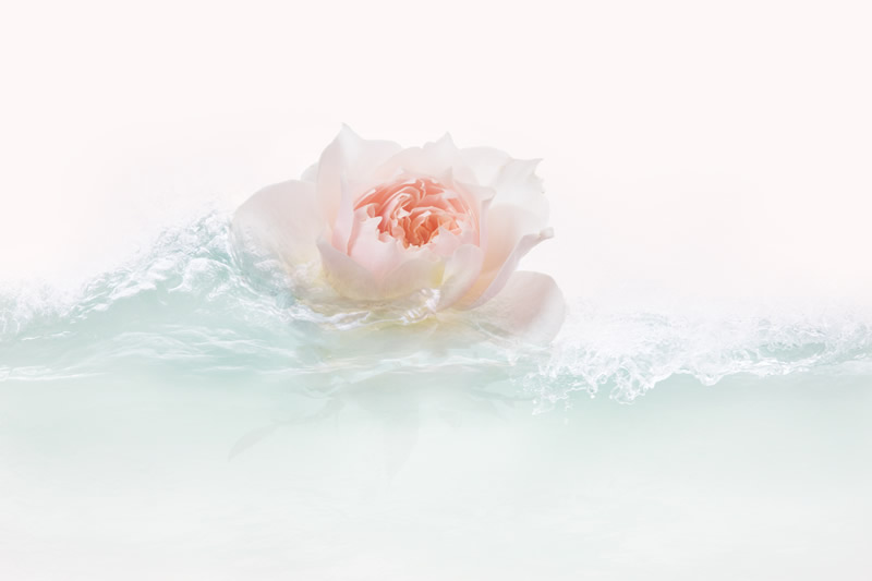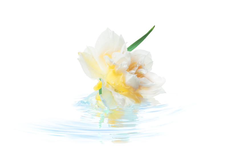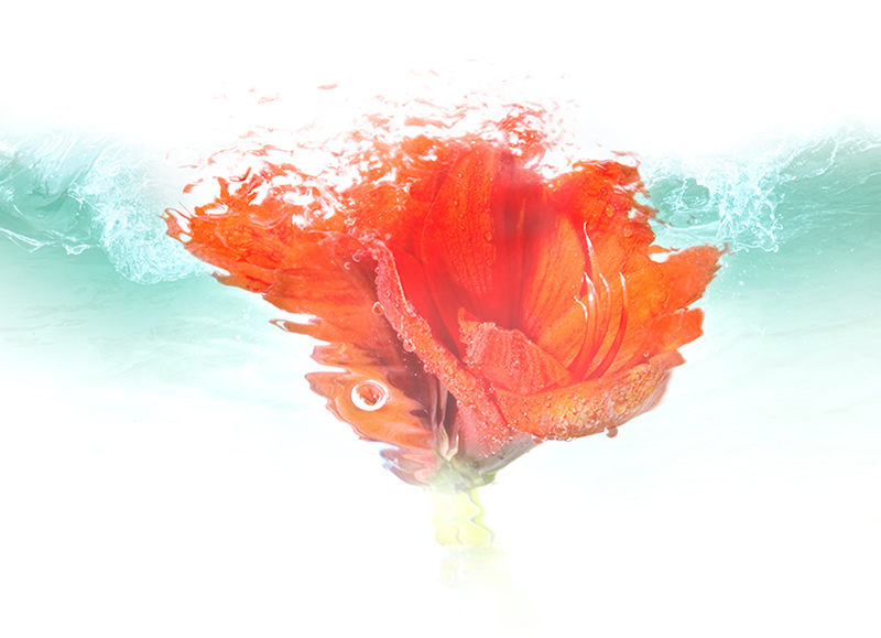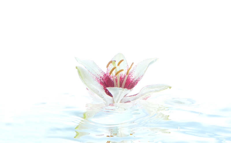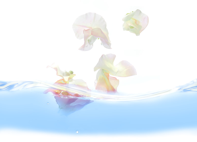 水と戯れる花は色色に表情を変える。