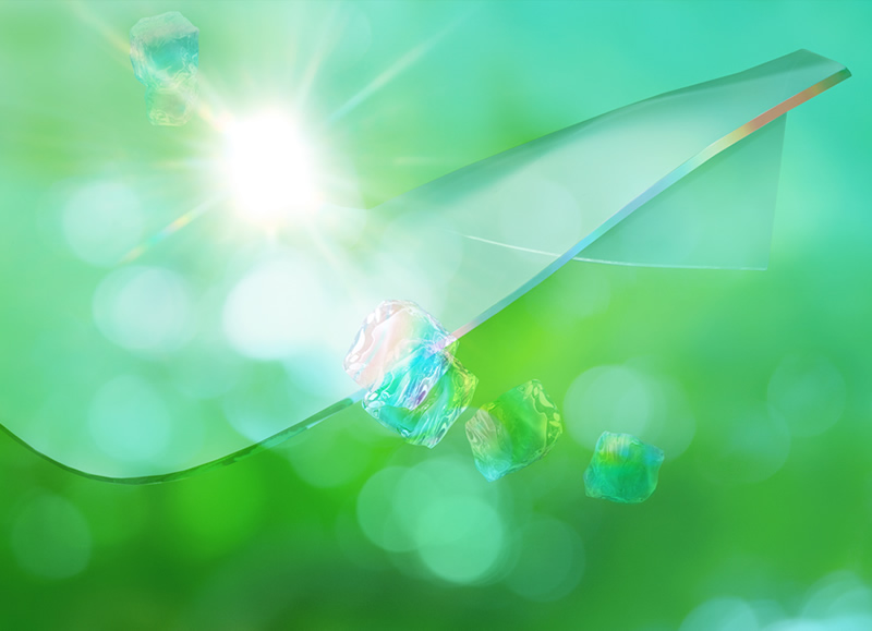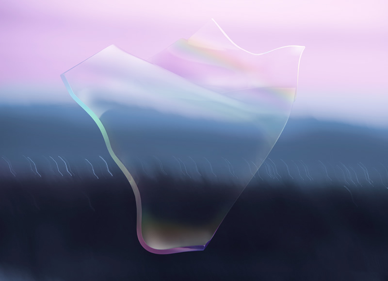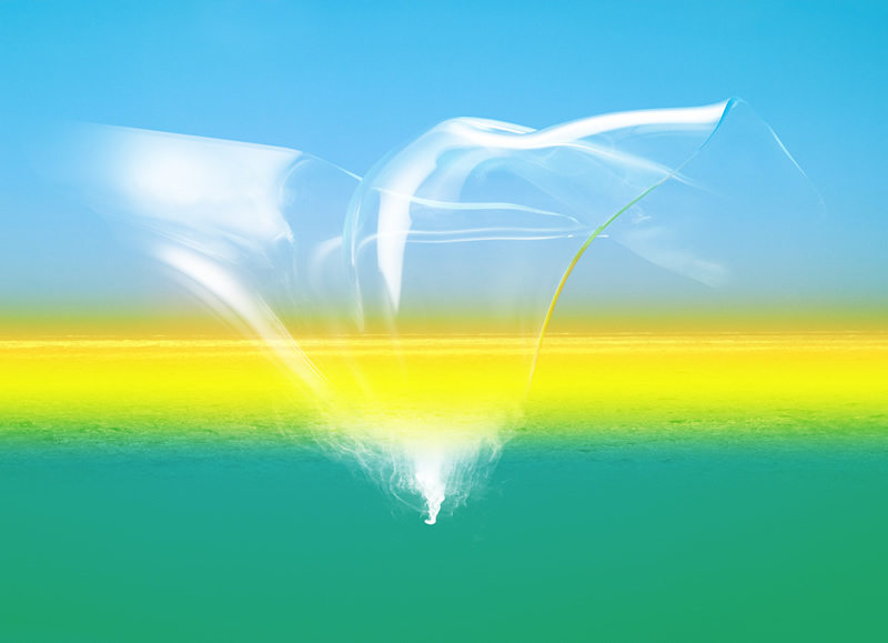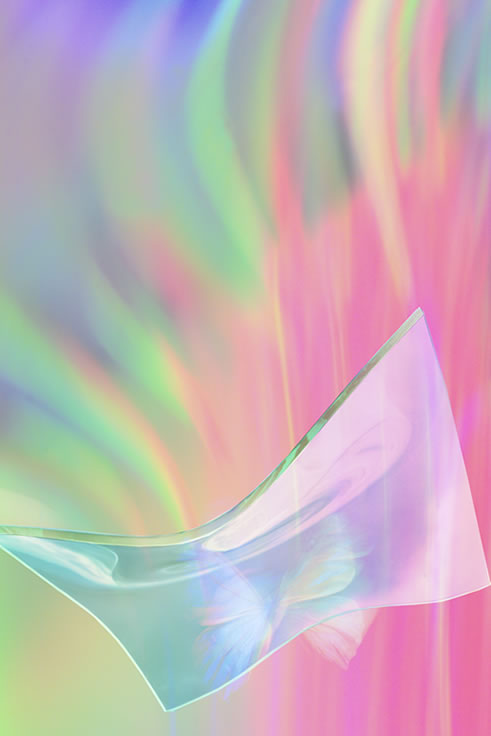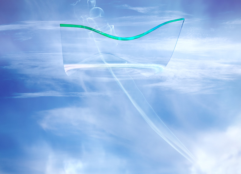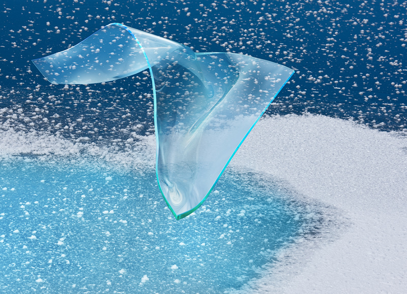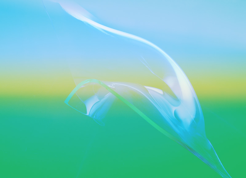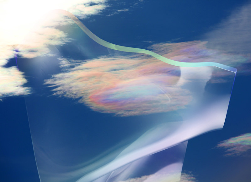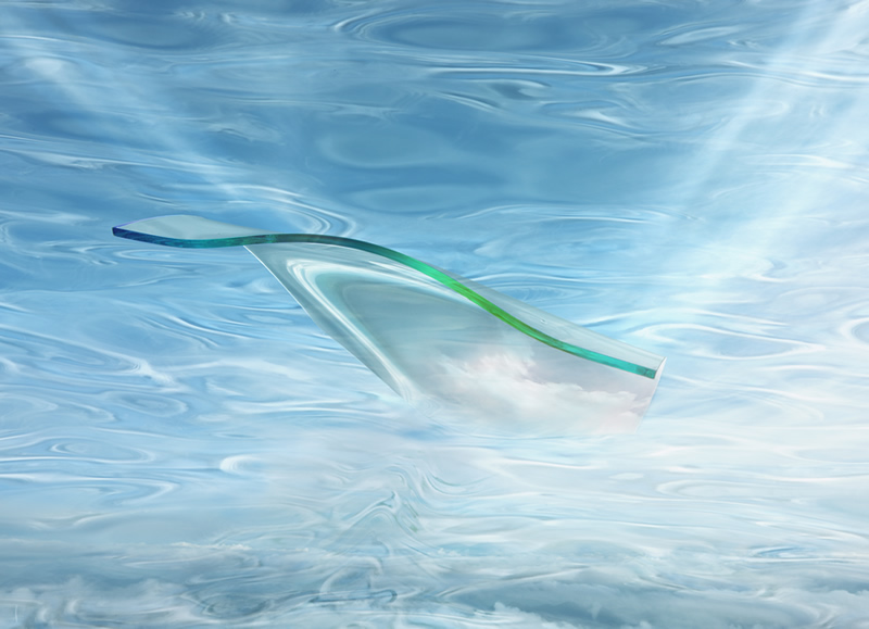 そのような感覚を写真で表現するとどうなるのか~~~ガラス作家の倉本陽子氏の協力を得てスランピングという技法で曲げた板ガラスに私の感覚を試してみました。